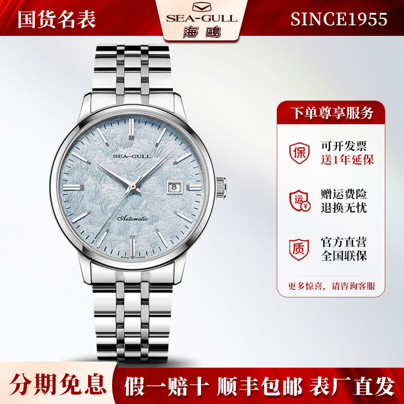 正品海鸥表女士休闲月相小众轻奢时尚简约全自动机械手表女表6134