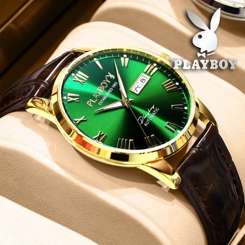 花花公子正品全自动机械手表男士新款名式超薄真皮带商务防水十大