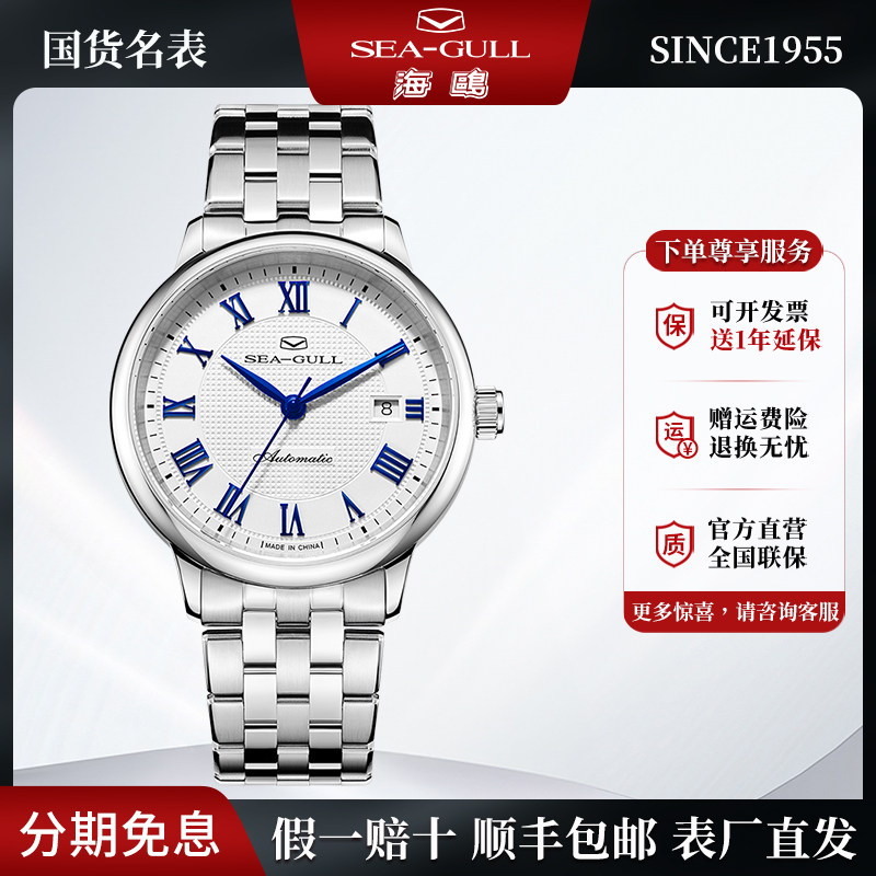 正品海鸥表男士简约休闲商务单历全自动机械手表男款雪松腕表6182