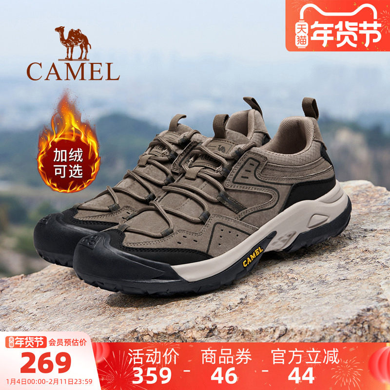 骆驼男鞋2025年冬季户外登山鞋徒步复古休闲大头低帮防撞加绒抓地