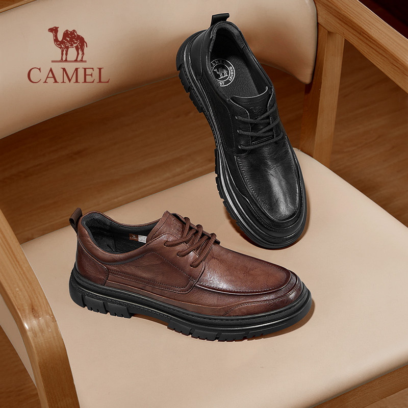 骆驼男鞋2025秋季新款真皮加绒皮鞋男士时尚厚底商务休闲运动皮鞋