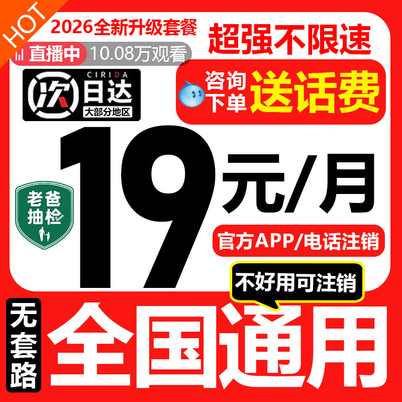 流量卡手机卡电话卡低月租上网卡纯打电话学生儿童手表注册4G5G卡