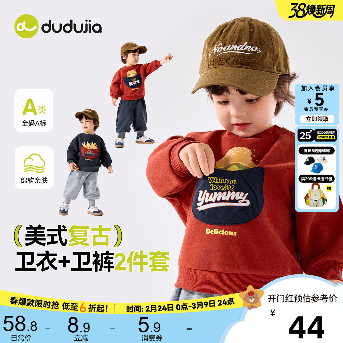[汉堡薯条]嘟嘟家宝宝套装春秋款儿童红色卫衣运动裤男童衣服春装