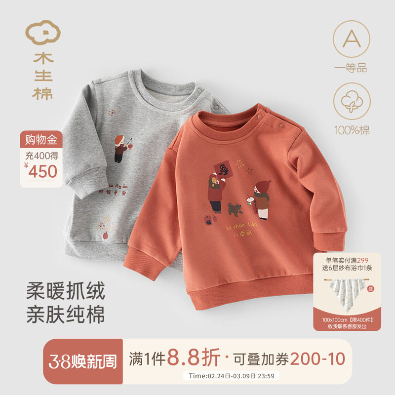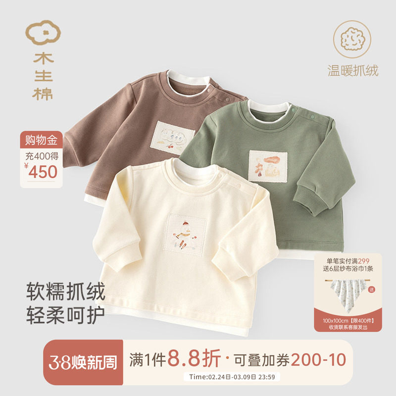 【清仓】宝宝春秋抓绒上衣婴儿纯棉保暖卫衣男女宝宝外出可爱衣服