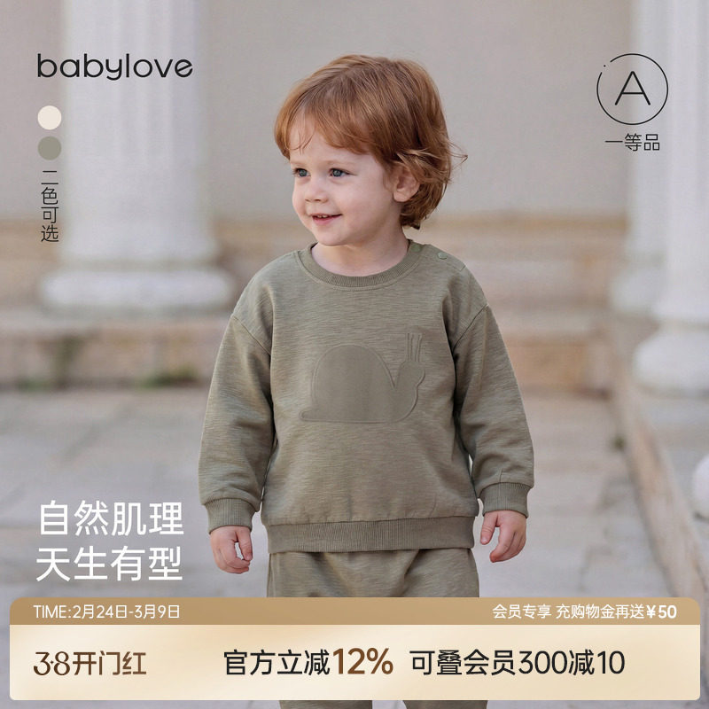 babylove宝宝卫衣春秋季休闲宽松上衣竹节棉婴幼儿纯色百搭外出服