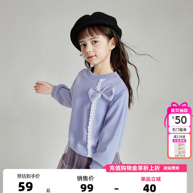 安踏儿童卫衣女童2026年春秋新款宝宝上衣小公主洋气上衣小马长袖
