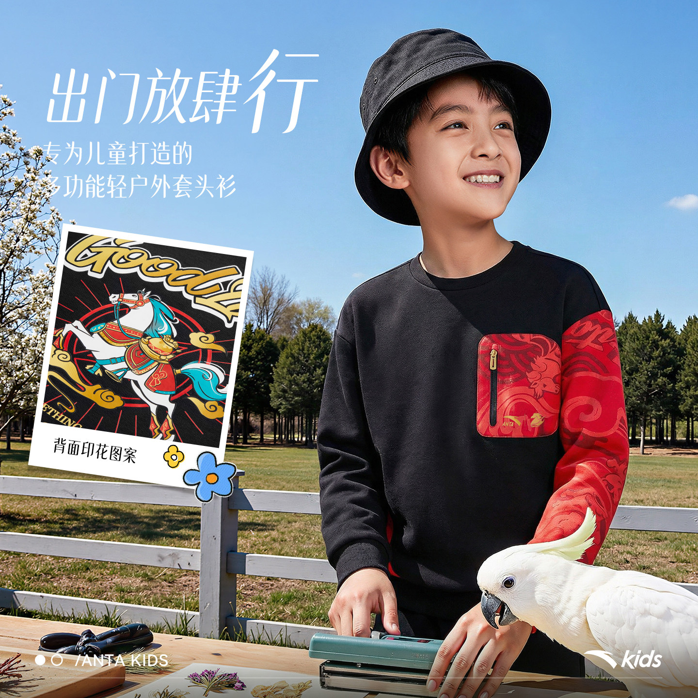 安踏儿童卫衣男童2026年春秋新款本命年马年红色宝宝长袖上衣