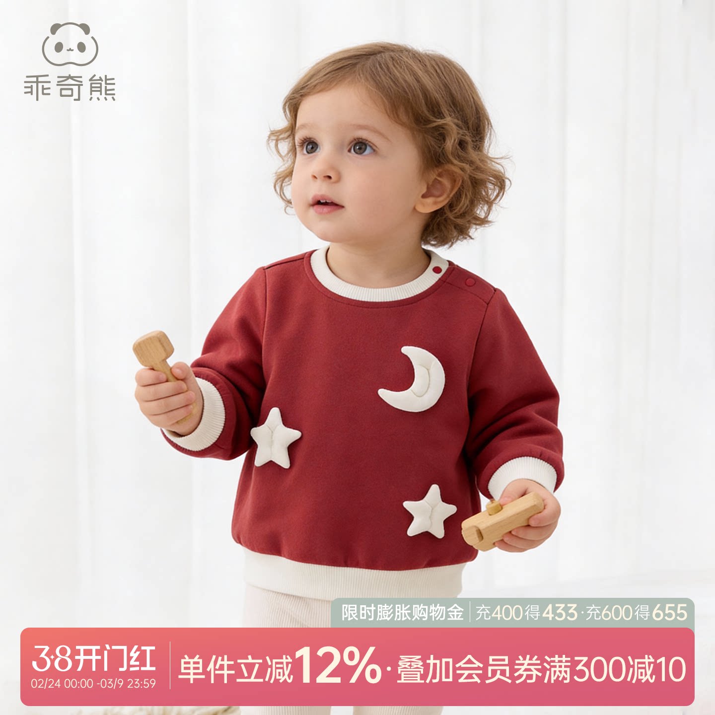 嘟嘟家男童卫衣春秋儿童衣服红色宝宝上衣女宝童装女童春装时髦新