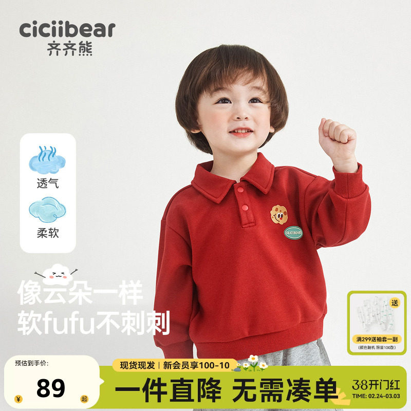 齐齐熊男童卫衣春秋儿童翻领衣服宝宝长袖上衣春装2026新款女童装