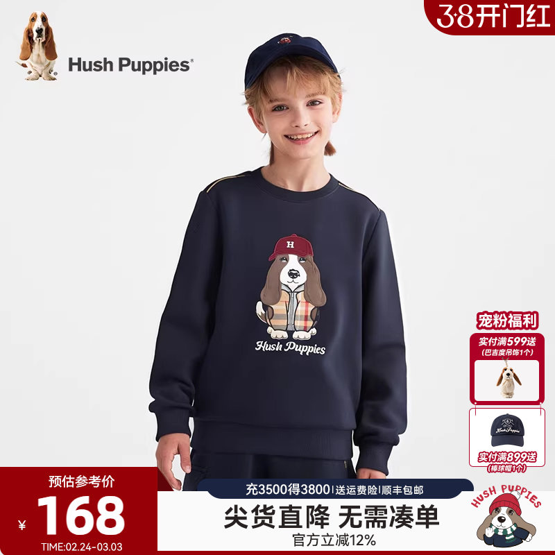 暇步士童装儿童卫衣春秋新品男童休闲套头衫落肩女童卡通宝宝上衣