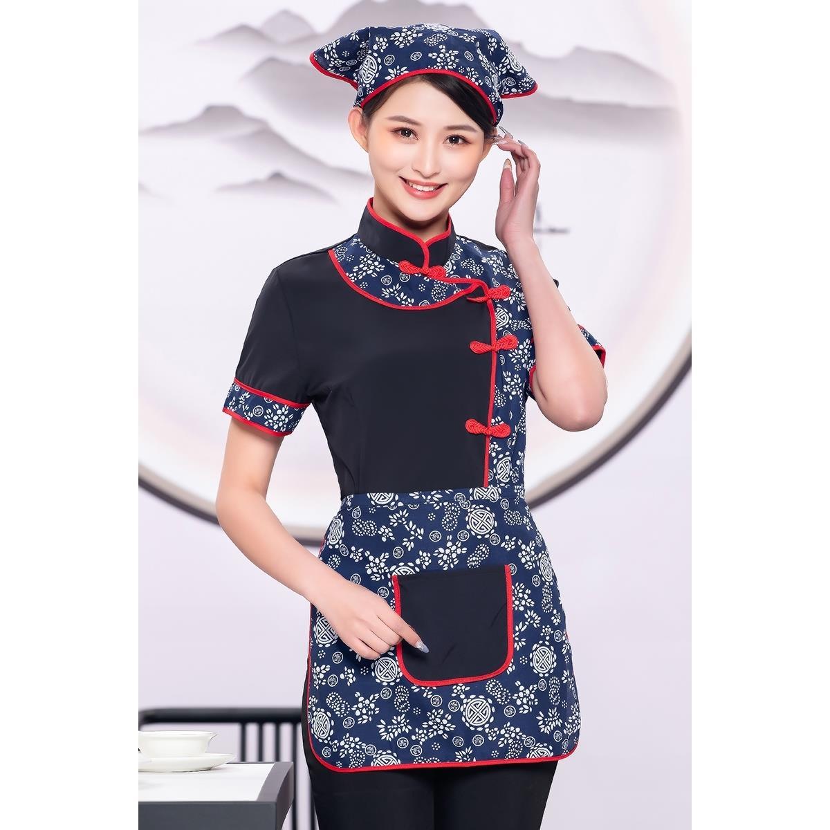 酒店餐饮服务员工作服短袖女夏装饭店餐厅火锅店员工茶楼中式工装
