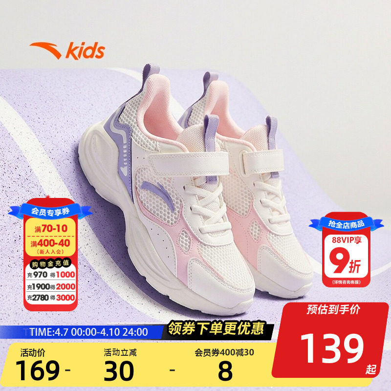 蝶翼丨安踏儿童运动鞋女童鞋春夏新款网面透气休闲鞋犟弹跑鞋童鞋
