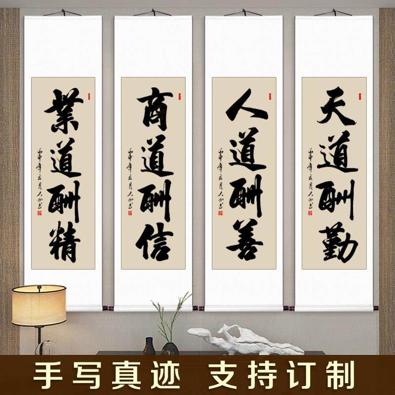 条幅字画手写真迹挂画客厅书房办公室卷轴竖幅毛笔字书法作品定制