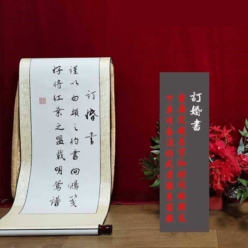订婚宴卷轴订婚书红喜结婚吾家有喜手写毛笔字书法作品定制卷轴画