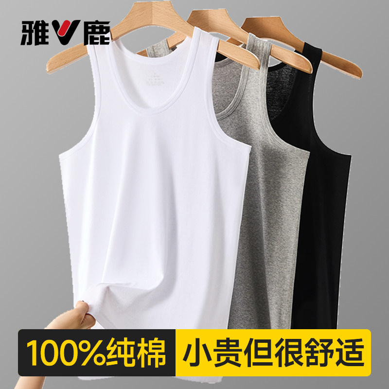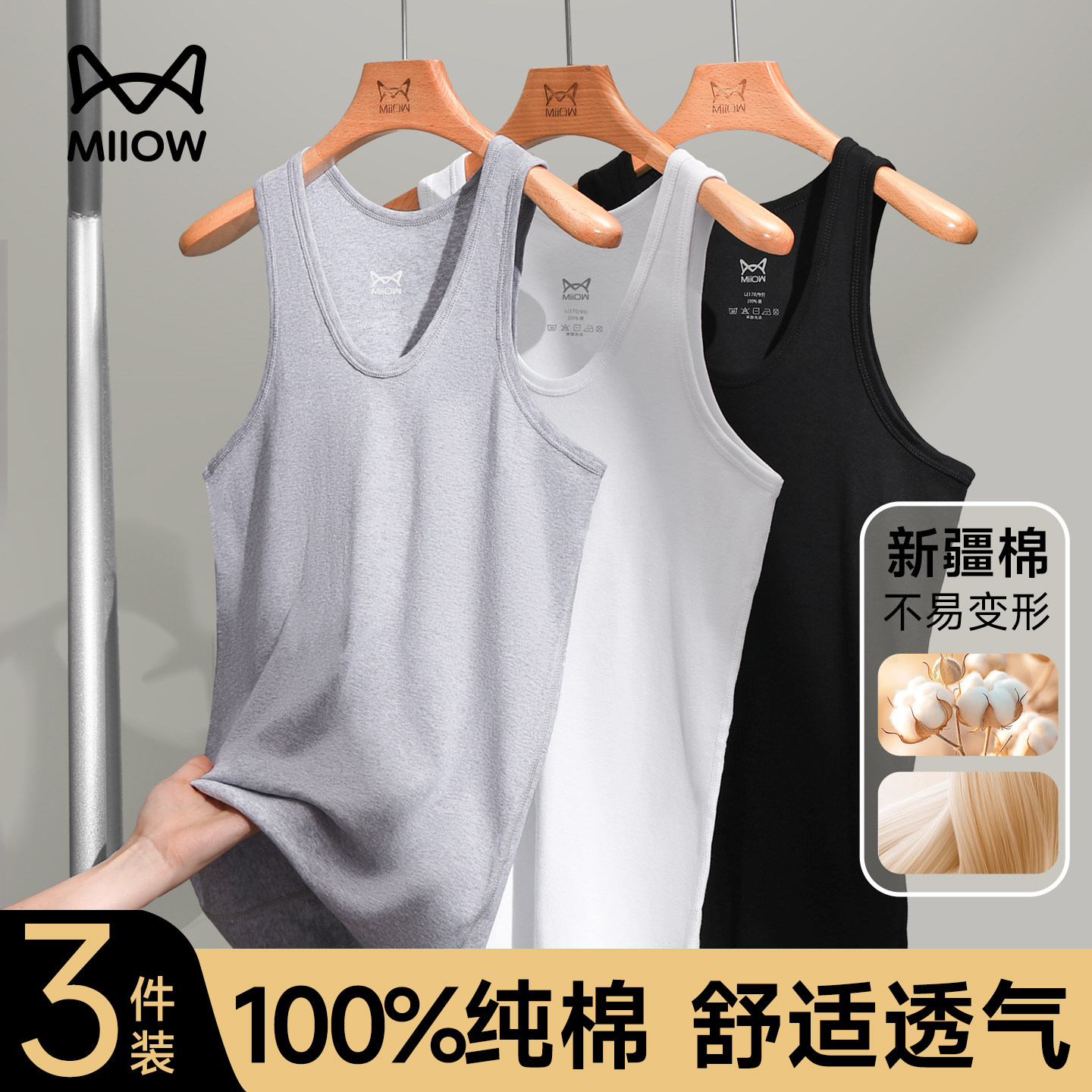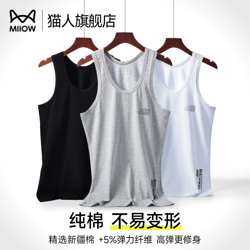 猫人男士背心纯棉全棉100%不变形2025新款打底内穿男式跨栏老头衫