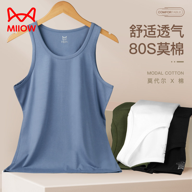 猫人男士背心夏季薄款男式莫代尔棉运动健身跨栏打底衫男内穿汗衫