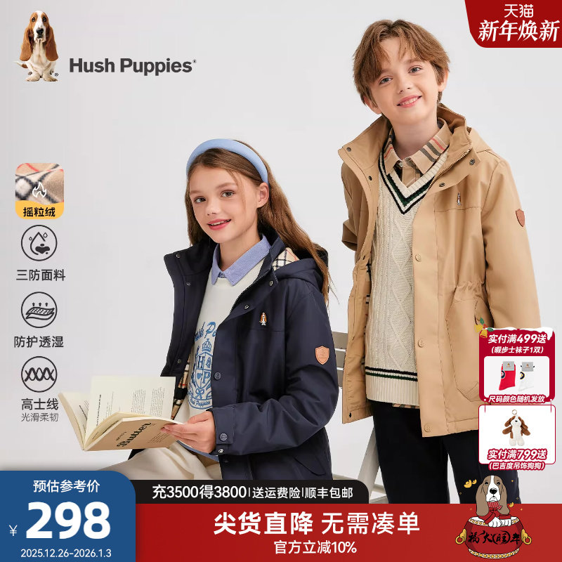 暇步士童装儿童风衣25秋冬新品男大童三防外套连帽女童加绒厚外套