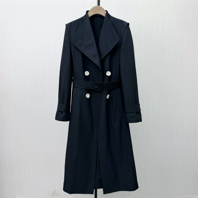 良月●2025冬季新品 风衣女气质长款休闲简约双排扣大衣外套9266