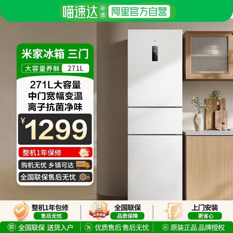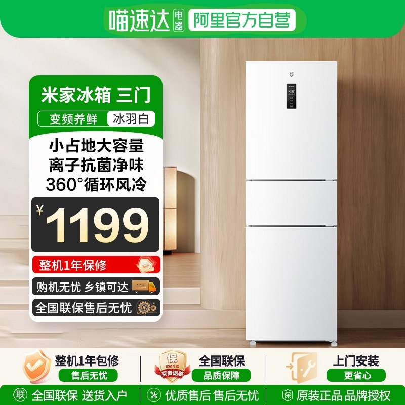 - 电冰箱三门节能家用 无霜