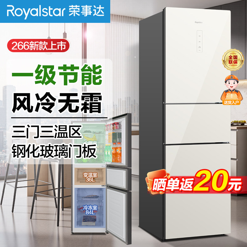 荣事达冰箱三门266L一级能效风冷无霜冰箱家用小型出租房双门省电