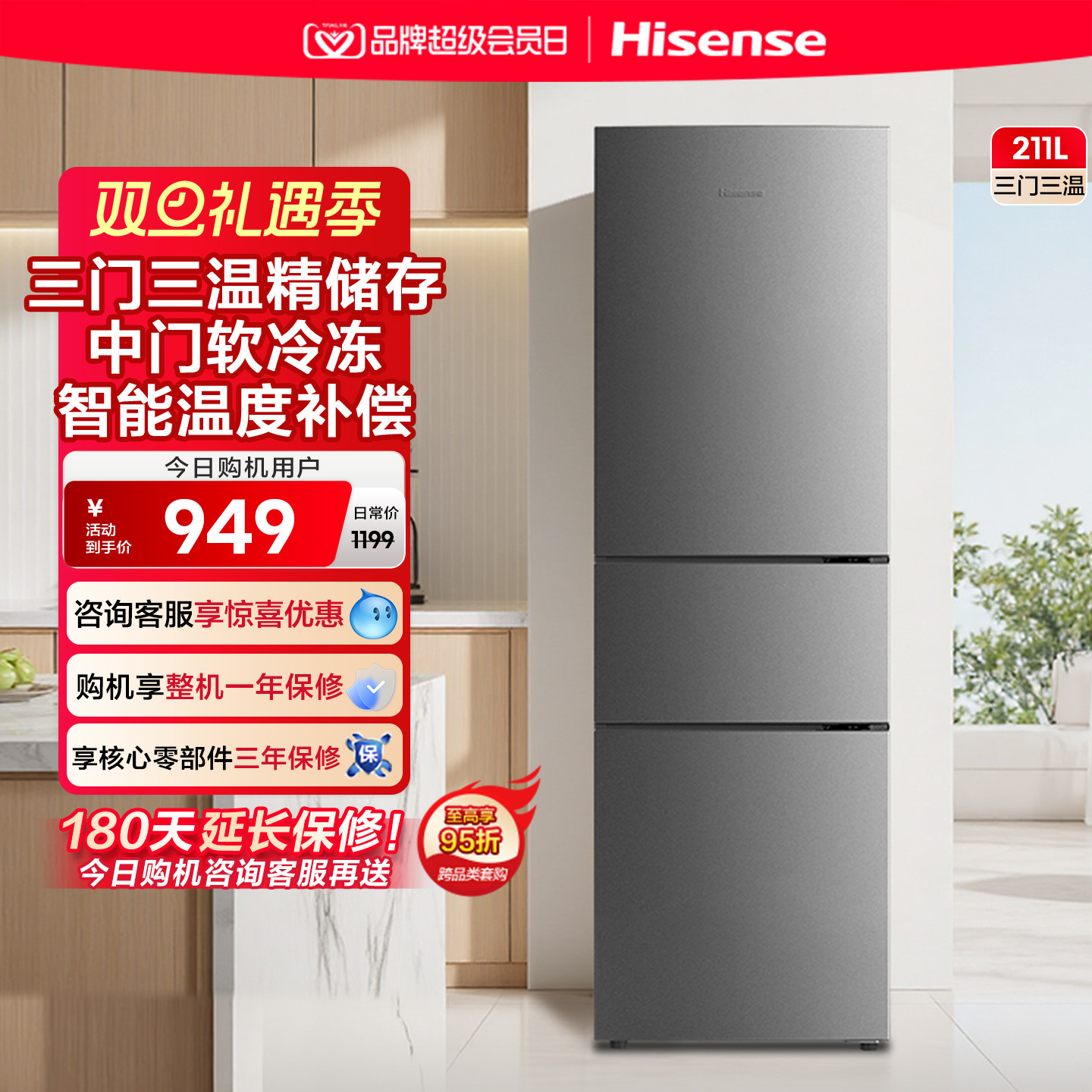 海信211L升冰箱三门三开门节能家用低噪小型宿舍租房官方换新补贴