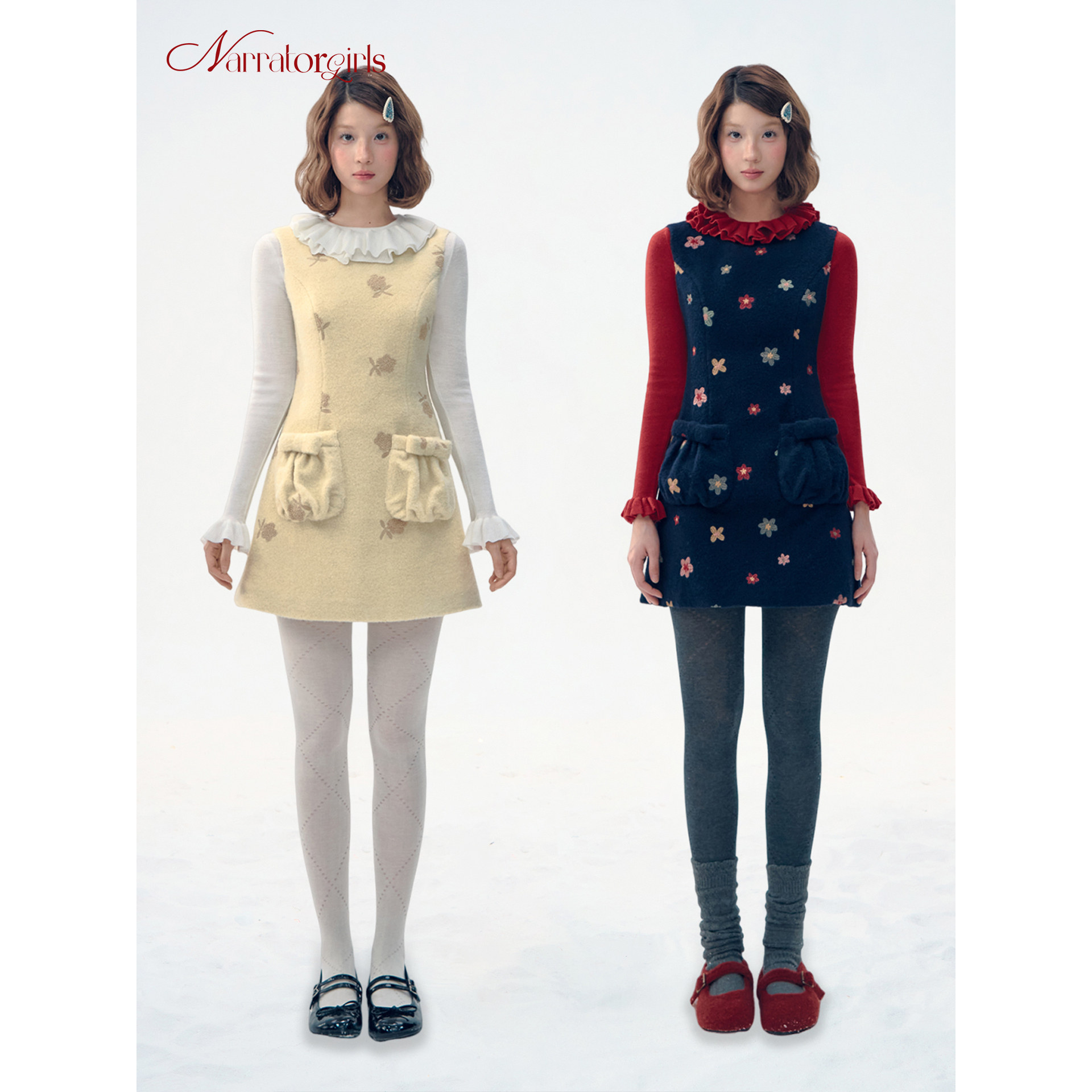 豆豆10【毛呢背心裙】下摆花边无袖叠穿冬季百搭休闲裙子-25DQ259