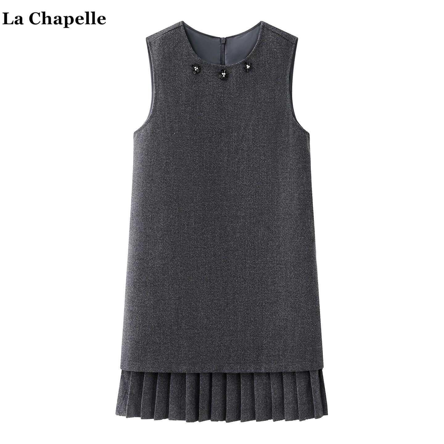 拉夏贝尔/La Chapelle小香风钉珠圆领毛呢背心裙女冬季无袖连衣裙