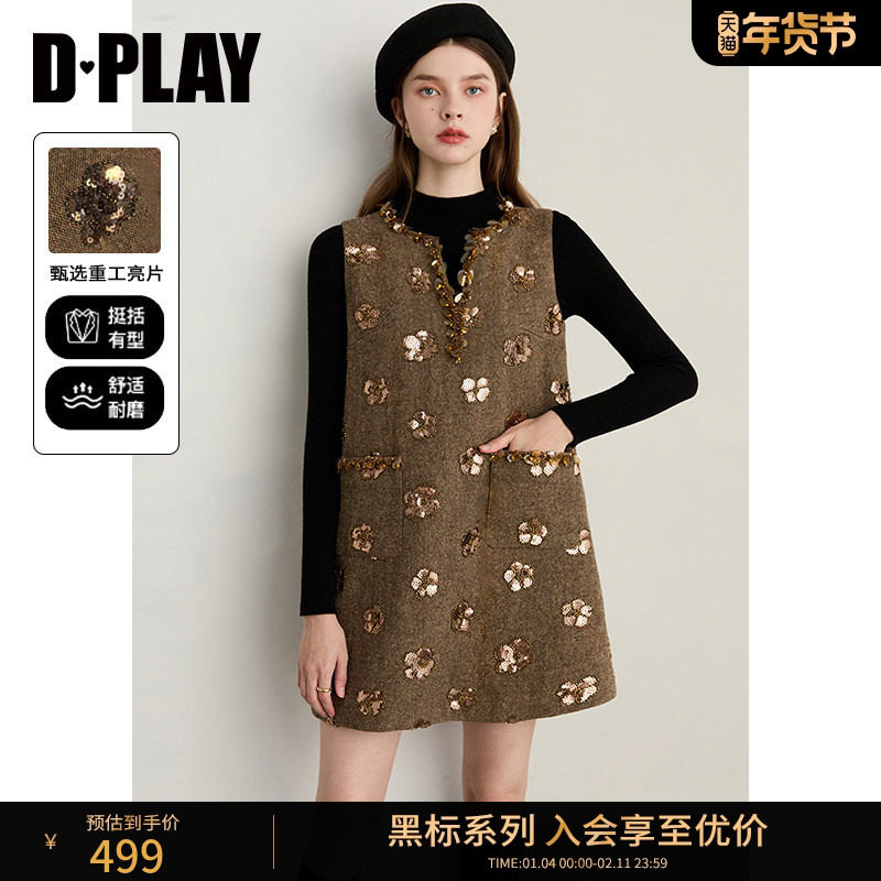 DPLAY【黑标】2025秋冬连衣裙A字裙好看毛呢背心裙粗花呢马甲裙