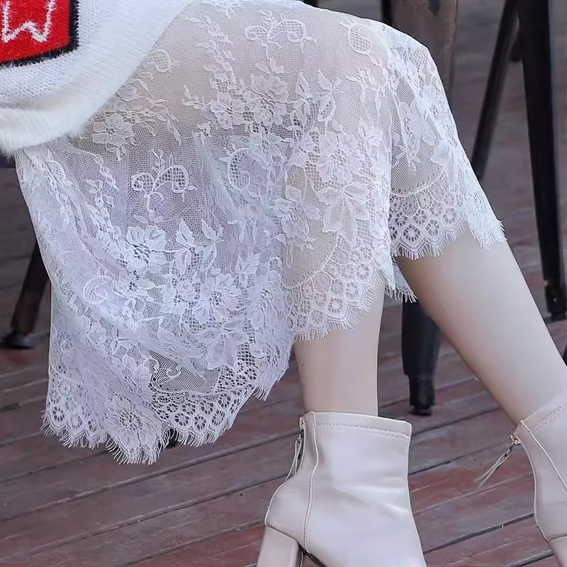 蕾丝网纱半身裙旗袍内搭衬裙显瘦安全中长裙松紧复古汉服打底裙女