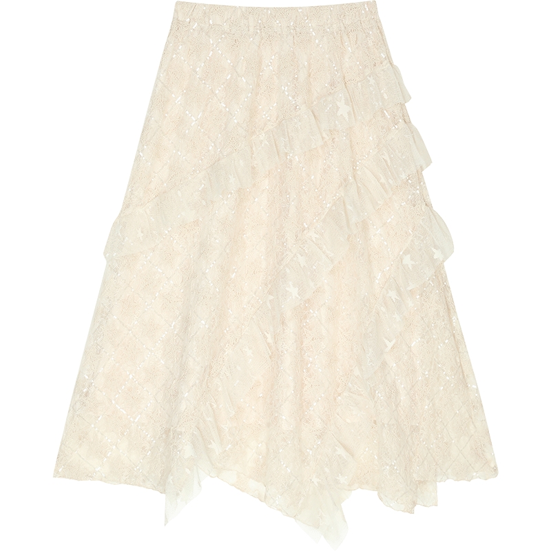 妖精的口袋星星网纱蕾丝拼接半身裙女2025年秋季新款白色甜美长裙
