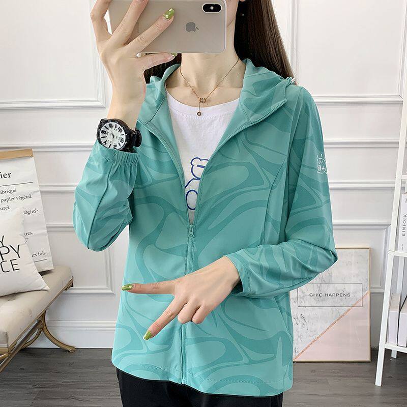 夏季冰丝防晒衣女透气防紫外线皮肤衣户外运动速干时尚印花外套潮