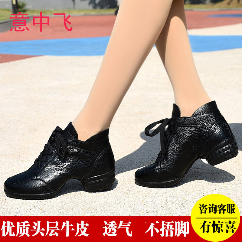意中飞秋冬款广场舞蹈鞋成人真皮女新款跳舞鞋软底中跟水兵舞蹈鞋