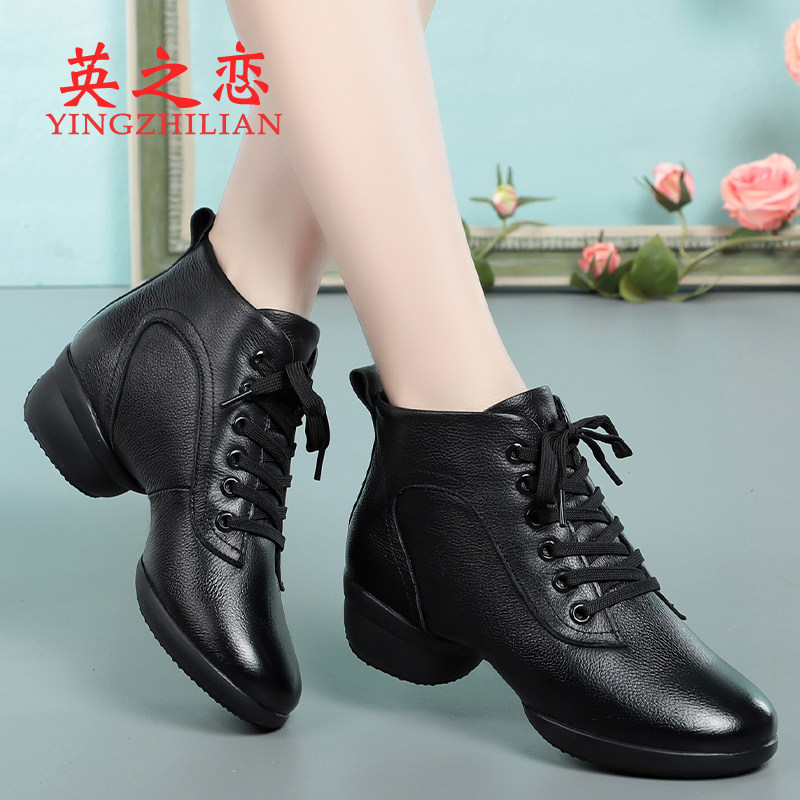 意中飞秋冬季舞蹈鞋广场舞鞋女真皮水兵舞蹈鞋现代舞鞋爵士跳舞鞋