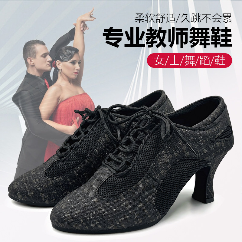 北舞女成人拉丁舞鞋交谊舞中高跟教师广场舞蹈跳舞水兵摩登牛津布