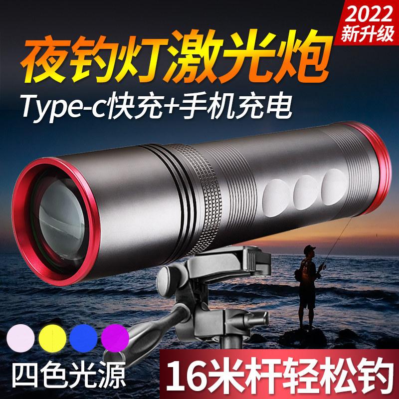 激光炮钓鱼夜钓灯超亮强光野钓专用灯大功率紫光蓝光灯氙气台钓灯