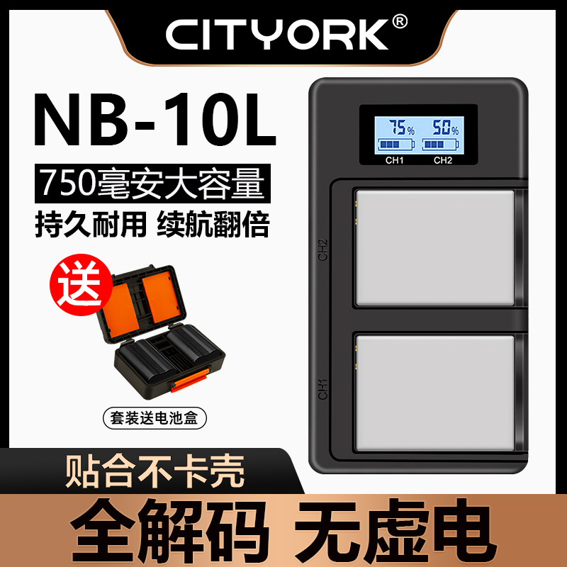 【国家3C认证】NB-10L相机电池适用佳能G1X G3X G15 G16 SX40 SX50 SX60单反大容量快充充电器套装