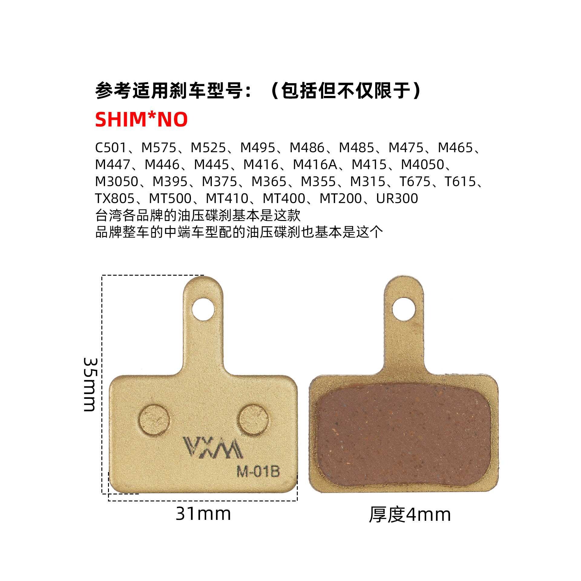 山地自行车碟刹来令片油刹刹车片BB5BB7通用半金属m355碟刹器配件