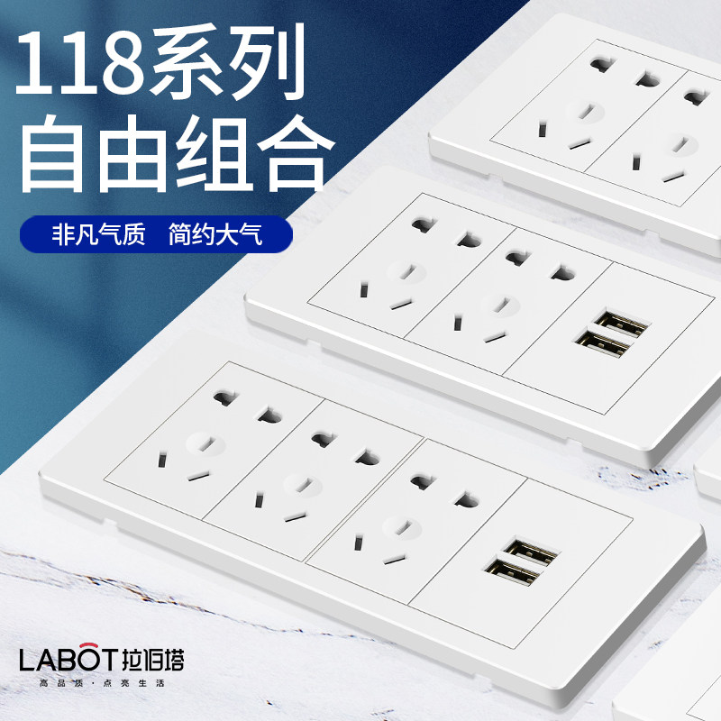 公牛118型开关插座面板墙壁家用9九孔多孔十二孔十五孔暗装带开关