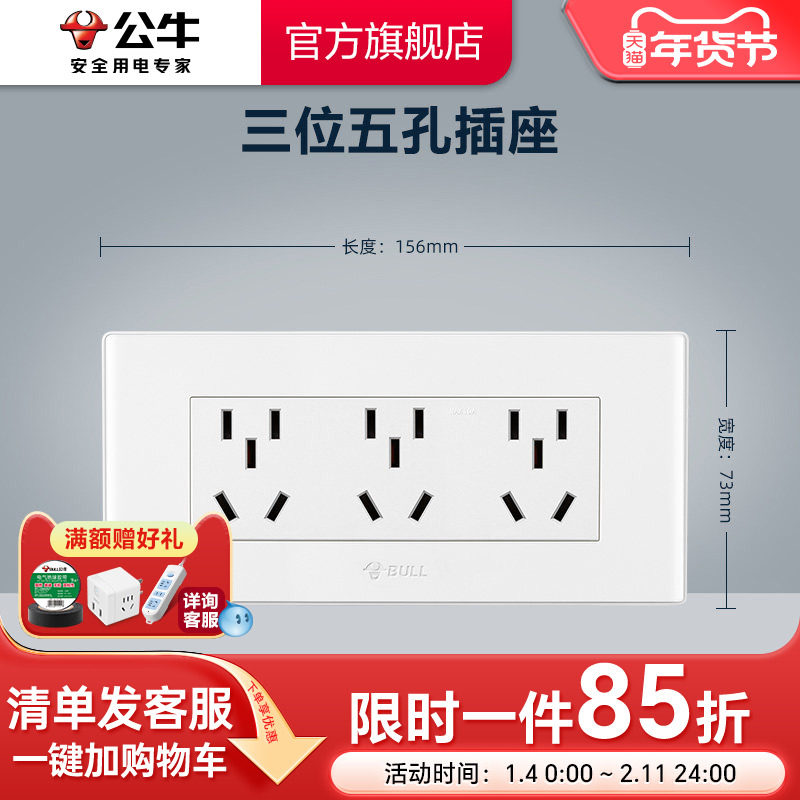 公牛插座旗舰118型开关插座五孔面板墙壁六孔9九孔12孔十二孔多孔
