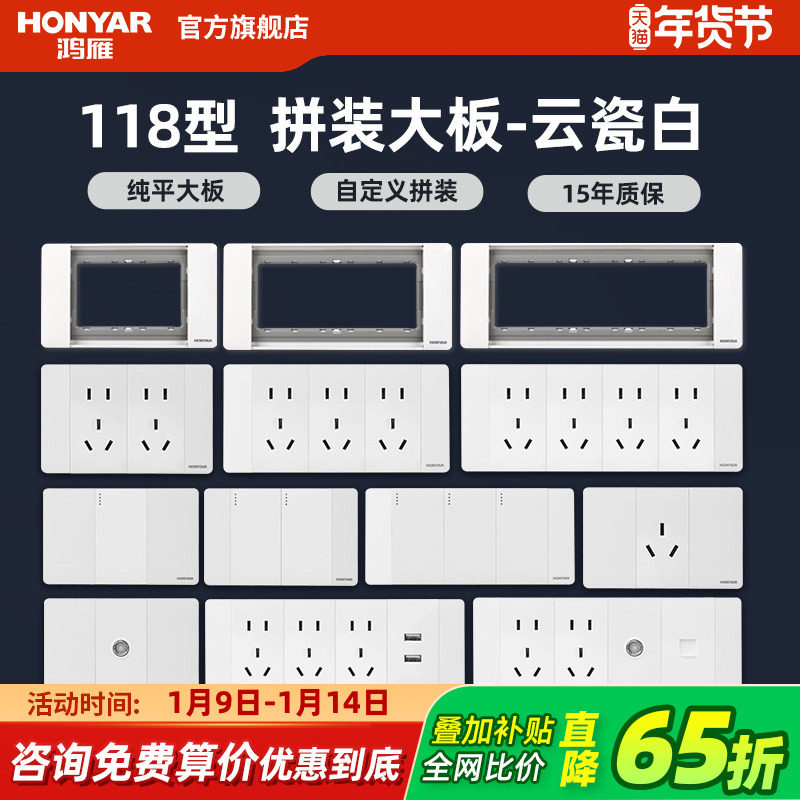 鸿雁118型开关插座面板多孔家用暗装墙壁9孔12孔十五孔模块Q118白