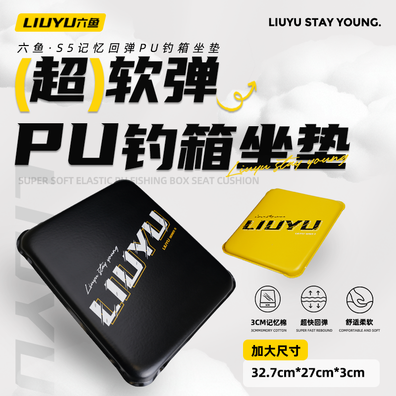 六鱼新款坐垫钓箱防滑舒适耐磨坐垫超软弹回弹快防水耐磨钓箱坐垫