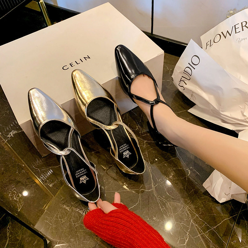 - 一字带粗跟鞋