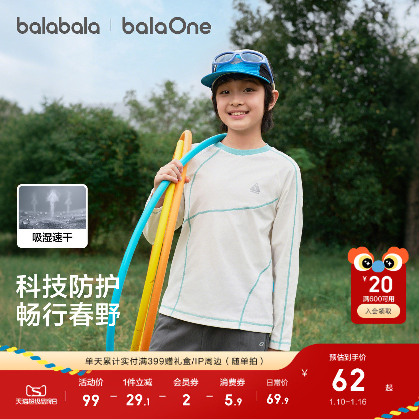 巴拉巴拉儿童长袖t恤男童2026新款春装上衣女童打底衫户外休闲t恤