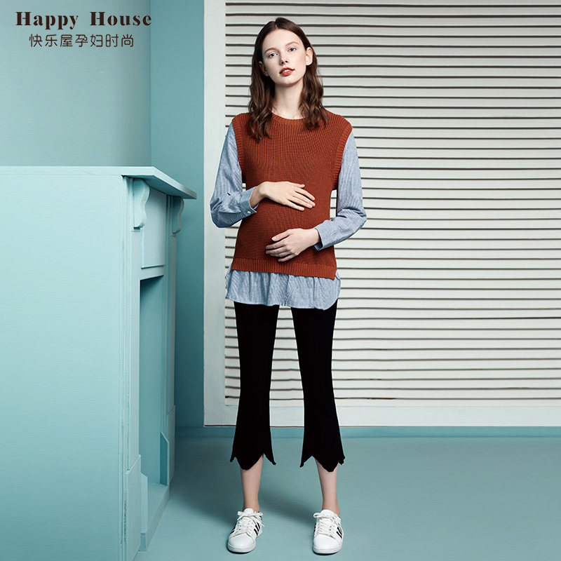 快乐屋孕妇针织衫套头2026新款长袖时尚拼接假两件孕妇春装上衣女
