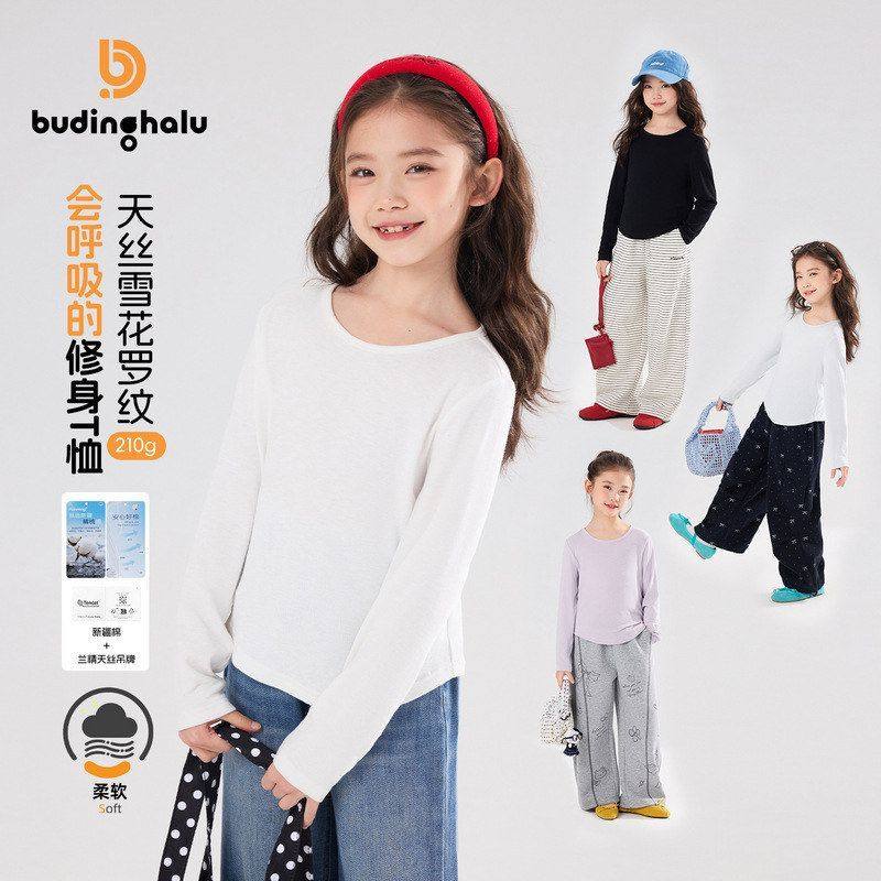 女童T恤长袖打底衫春秋2024新款潮中大儿童春装上衣女孩白色内搭