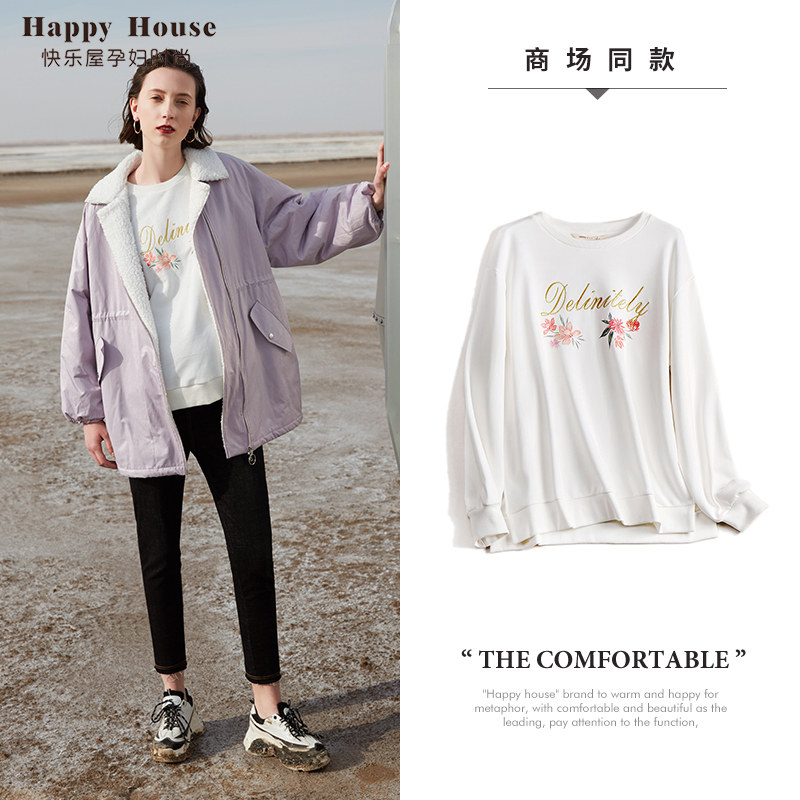 快乐屋孕妇春装上衣女2026新款时尚绣花宽松长袖孕妇卫衣针织衫春
