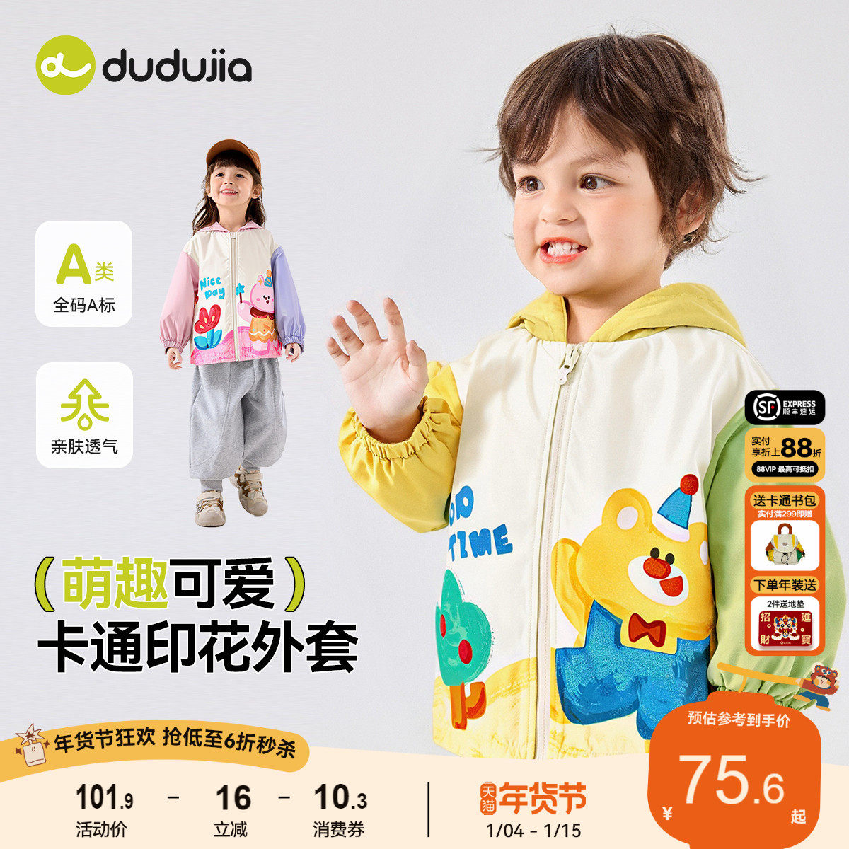 嘟嘟家宝宝外套春季卡通儿童连帽外衫春款休闲男童春装上衣女童装
