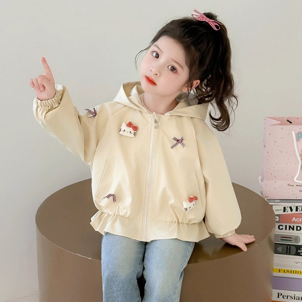 女童外套2025新款儿童洋气春季春装上衣女宝宝春秋款休闲猫咪连帽