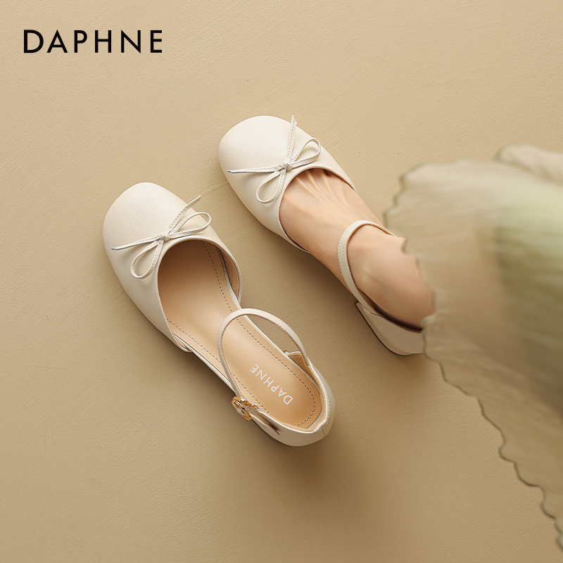 达芙妮凉鞋女款2025新款法式蝴蝶结夏季外穿粗低跟女士包头凉拖鞋