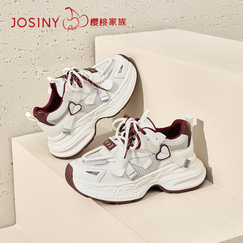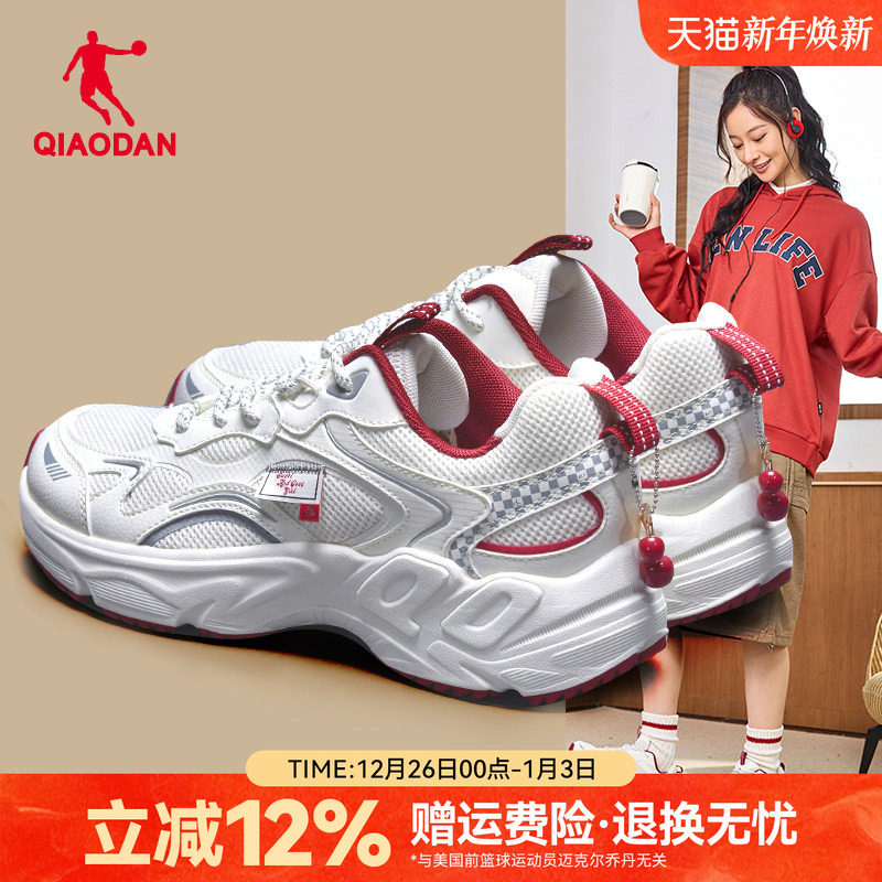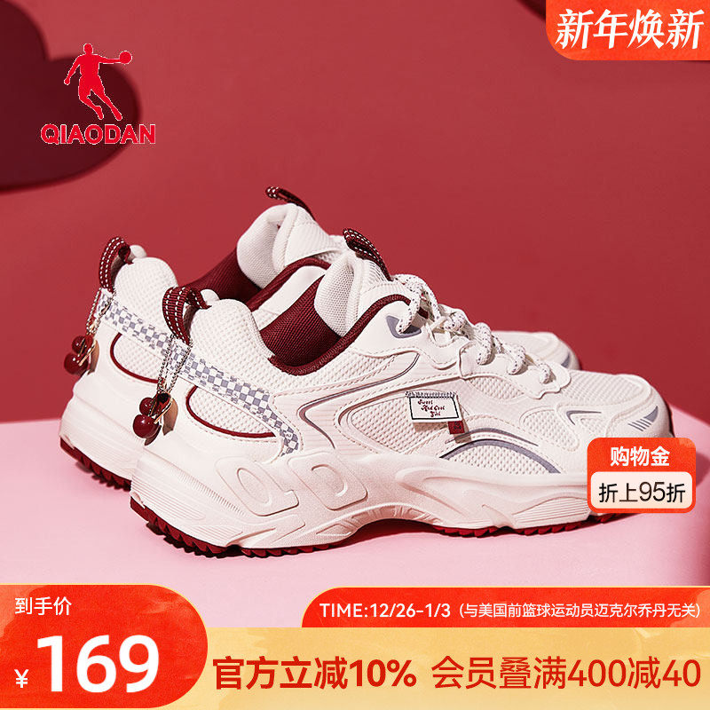 乔丹休闲鞋女秋季新款网面透气鞋子厚底增高老爹鞋七夕礼物樱桃鞋